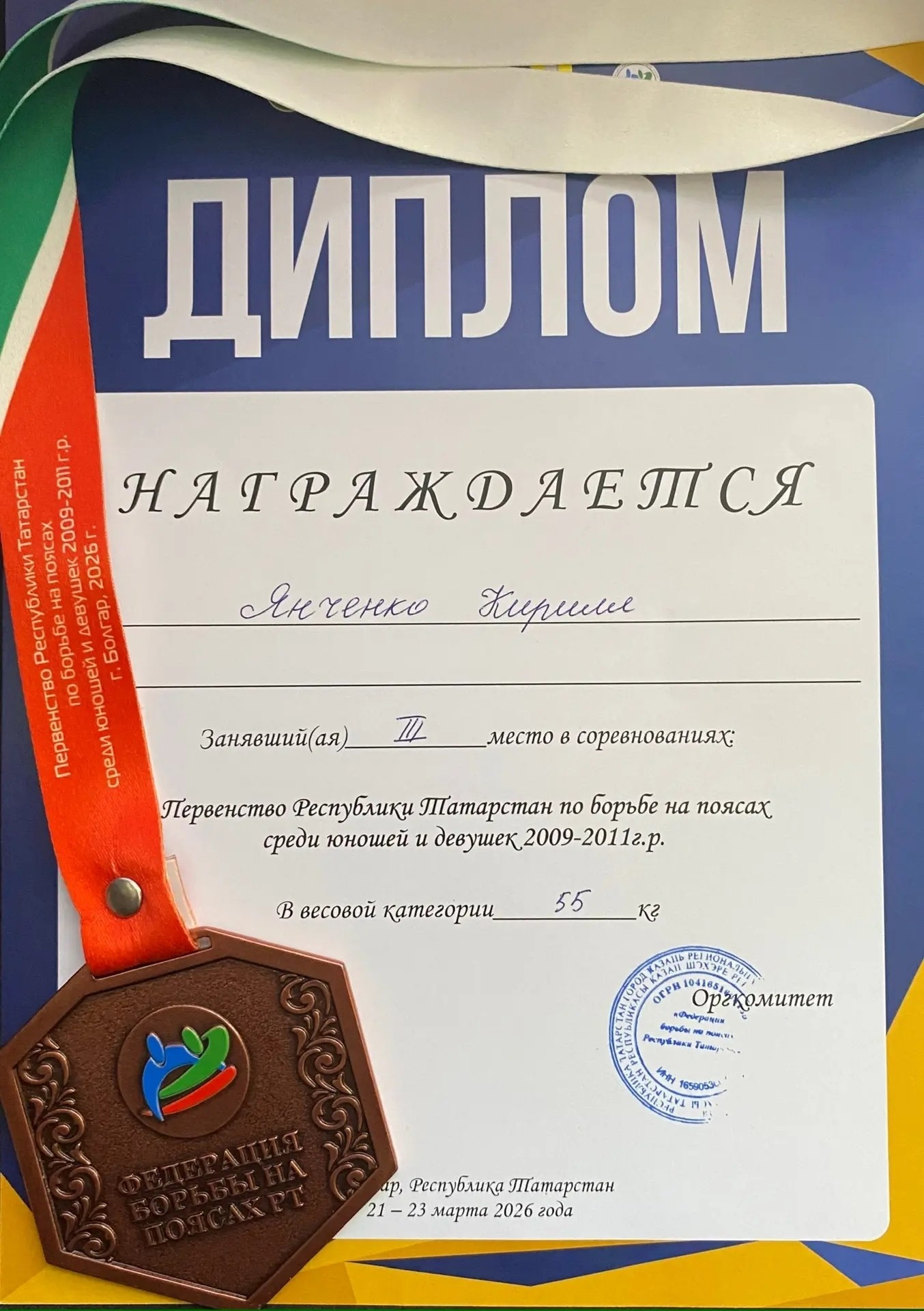 -Кирилл Янченко — 3 место среди юношей 2009-2011 г.р. (весовая категория 55 кг);