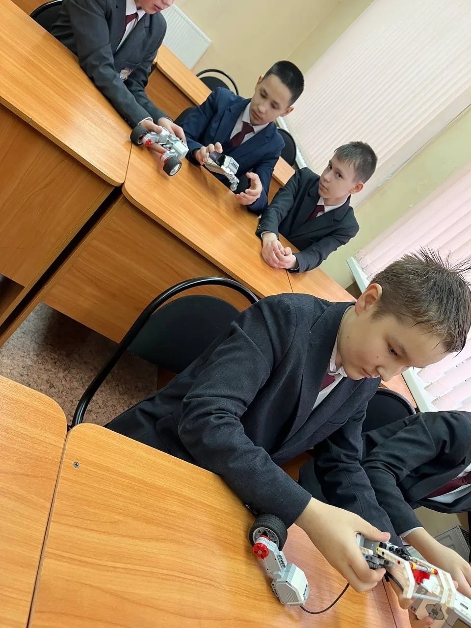 На этой неделе под руководством преподавателя Осипова М.И. учащиеся 55-й школы собрали и запрограммировали настоящих роботов.