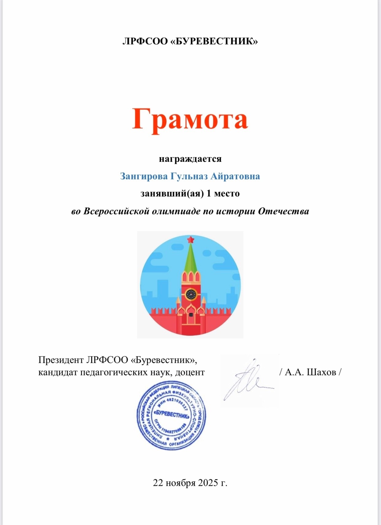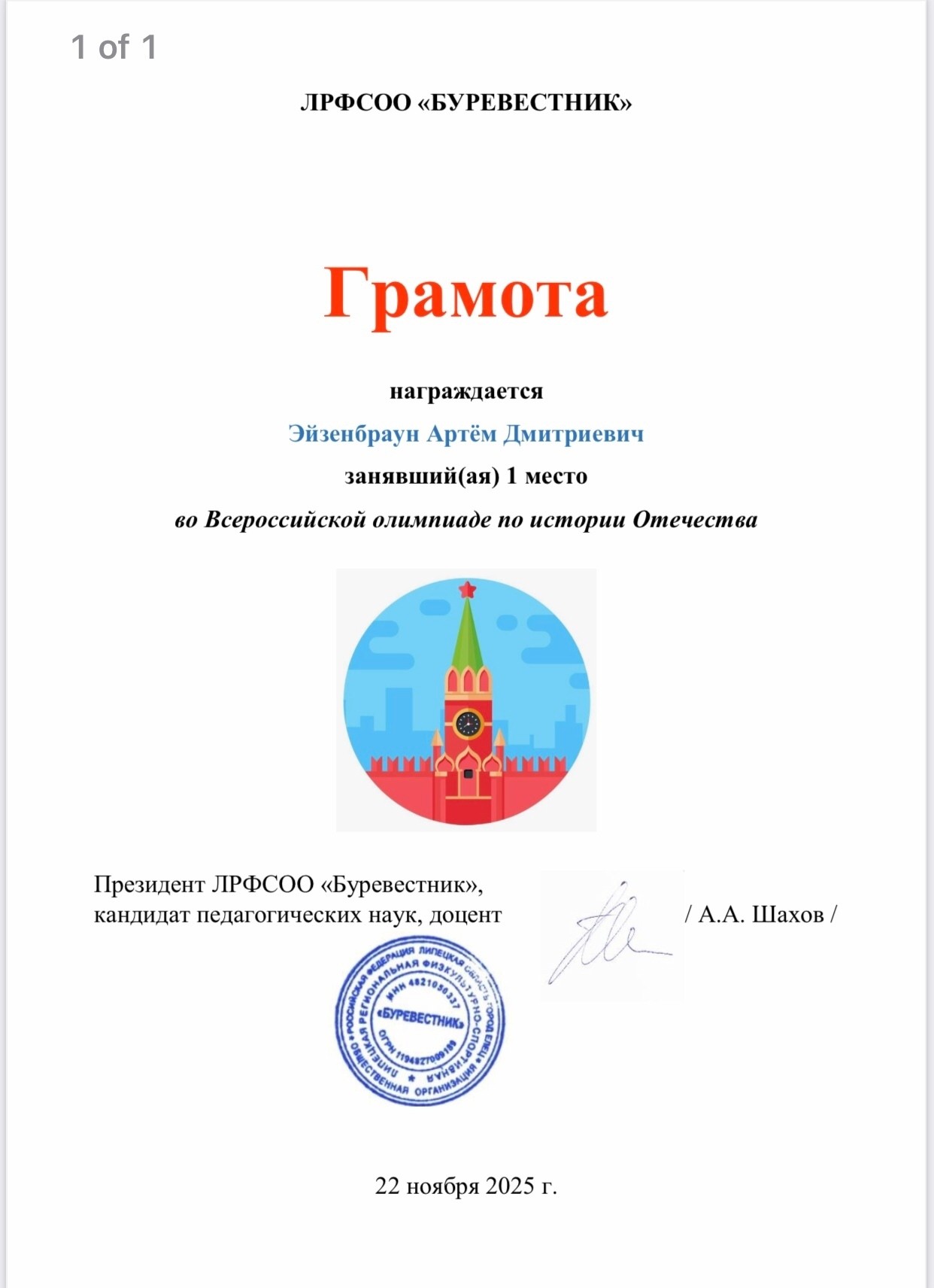 Все они удостоены грамот за 1 место: